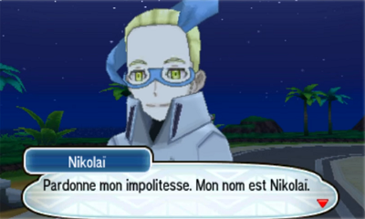 Nikolaï est un scientifique d'Unys menant des recherches sur la puissance des Pokémon. Dans sa région d'origine, il a aidé la nouvelle Team Plasma à libérer les Pokémon en tant que chef car il pensait que cette dernière était en accord avec son idéologie de développer le potentiel des Pokémon. Dans Pokémon Soleil et Lune, vous croisez Nikolaï à quelques reprises durant votre aventure. | |