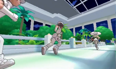 Une cinématique montre une mystérieuse jeune fille transportant un mystérieux Pokémon, poursuivie par de non moins mystérieux hommes en blanc dans un aéroport. Elle disparaît vers la lune… et le jeu commence.
