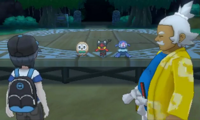 Vous rencontrez enfin Pectorius, le Doyen et Lilie lui relate votre mésaventure. Pour vous récompenser de votre courage, il vous remet votre premier Pokémon, ainsi que votre Pokédex et votre Passe Dresseur.