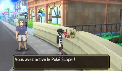 Tili vous invite à le suivre à l’Office du Tourisme où l’employée ajoute une fonction supplémentaire à votre Motisma-Dex, le Poké Scope, permettant de prendre les Pokémon en photo dans certaines zones.