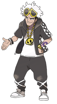 Stimulé par sa volonté d’exceller en combats Pokémon, ce jeune homme met ses compétences au service de la Team Skull. Le Pokémon qui l’accompagne n’est autre que le mystérieux Type:0. | |