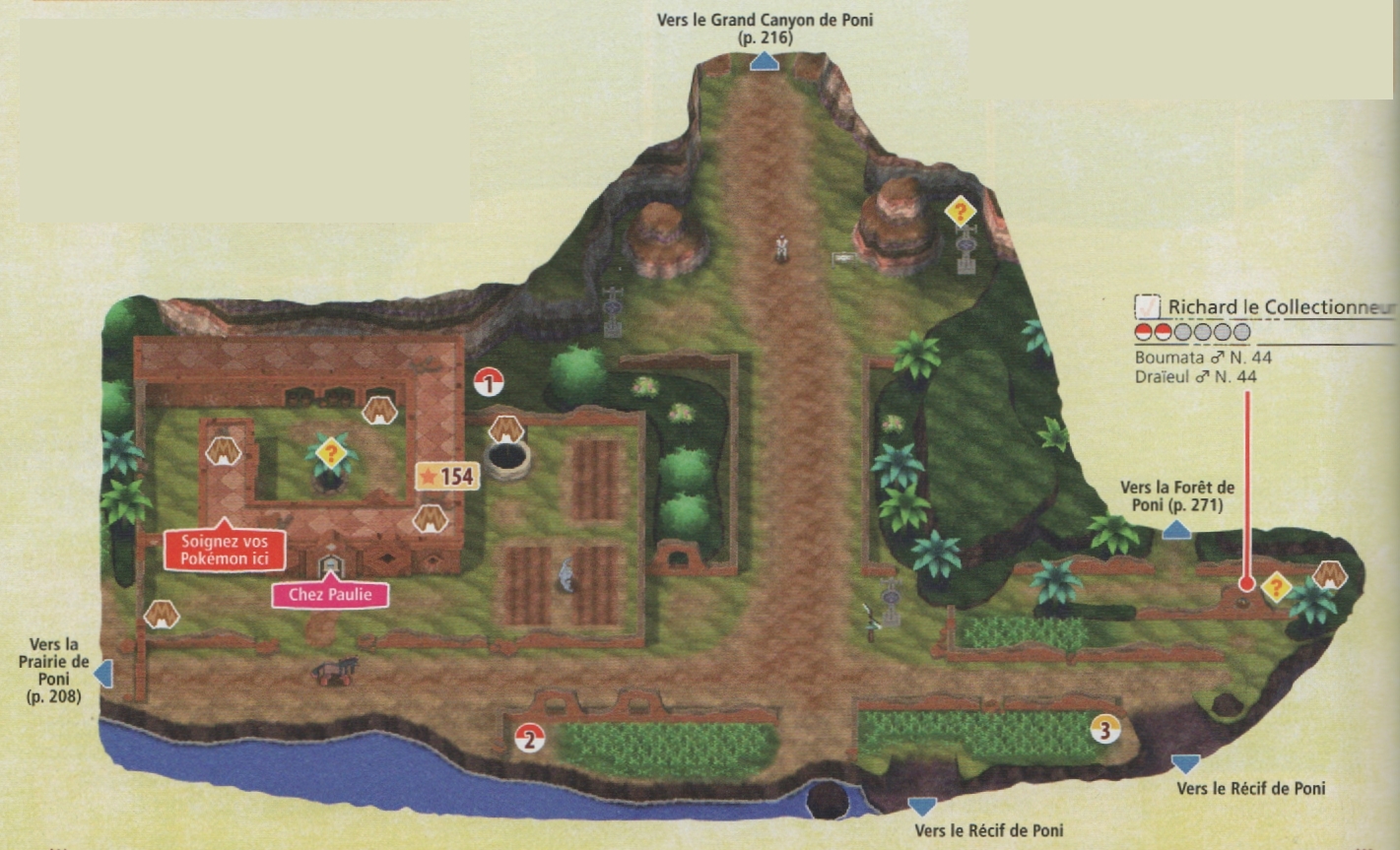 Nord : Grand Canyon de PoniNord-est : Forêt de Poni