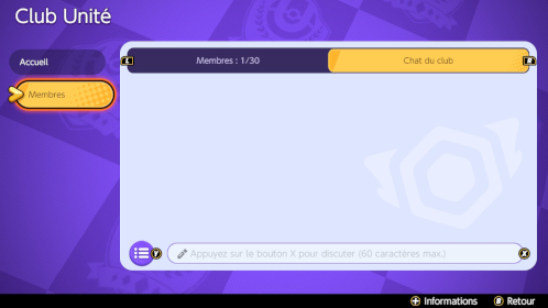 Vous pouvez consulter la description et les catégories du club, ainsi que son identifiant. Si vous êtes le chef, vous pouvez changer toutes les informations, sauf le nom.Membres