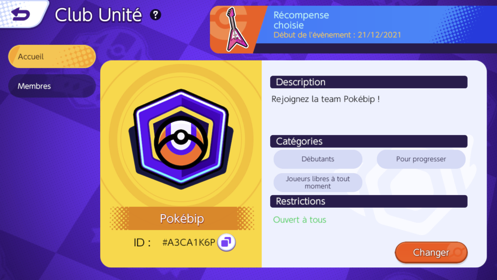Vous pouvez consulter la liste et le statut (en ligne/hors-ligne) des membres du club, et accéder au chat du club. Si vous êtes chef, c'est aussi là que vous pouvez consulter les demandes d'adhésion.Évènement et récompenses