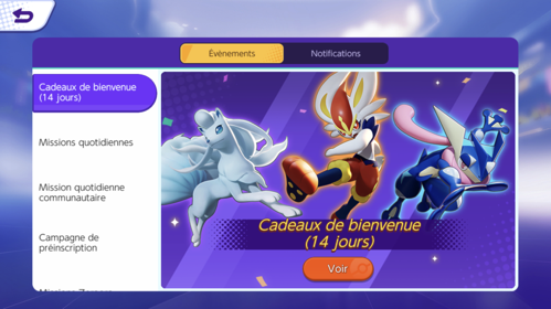 Hormis les combats, à travers des Bonus de connexion, des missions ou des défis, vous avez de multiples occasions d'obtenir de l'équipement, des combattants ou des ressources pour évoluer convenablement sur Pokémon UNITE. Remplissez un maximum d'objectifs pour obtenir de fabuleux prix (allant de simples Pièces Æos à des Holo-Costumes uniques, voir des combattants Pokémon).