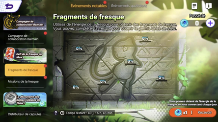 Vous pouvez obtenir de l'énergie de la fresque chaque jour en vous connectant. La limite d'énergie de la fresque vous que vous pouvez obtenir est de 6.