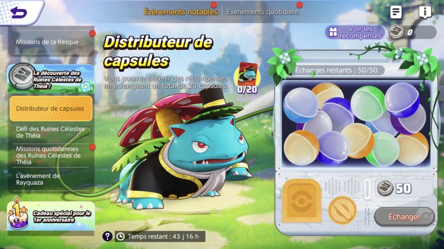 Vous pouvez obtenir des récompenses en échangeant un total de 20 capsules (dont les Holo-costumes "En smoking" pour Florizarre et Mentali).