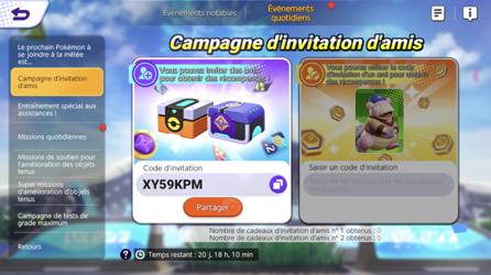 Chaque Dresseur peut envoyer des codes d'invitation autant de fois qu'il le souhaite pour inviter d'autres joueurs, mais ne peut recevoir qu'un maximum de 50 cadeaux d'invitation d'amis de chaque type.