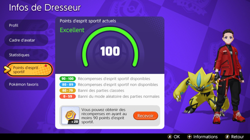 Notez que vous pouvez gagner un maximum de 5 points d'esprit sportif par jour.