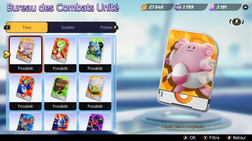 Permis Unité : Par le biais du Bureau des Combats Unité, vous pouvez acheter un Permis Unité contre des Pièces ou Gemmes Æos. Si vous obtenez une licence en double (via Bonus de connexion, Récompense de Niveau de Dresseur ou Défi limité) vous obtiendrez alors le prix de base en Pièces Æos dudit permis.