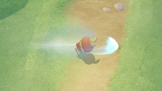 Récupération : 10 secEffet : Le lanceur envoie un coup de pied en sautant dans la direction indiquée, ce qui inflige des dégâts aux Pokémon adverses touchés et les repousse. La vitesse de déplacement des Pokémon adverses repoussés est réduite pendant une courte durée. Si les Pokémon adverses repoussés touchent un mur, ils deviennent incapables d'agir au lieu de voir leur vitesse de déplacement réduite.