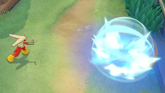 Récupération : 9 secEffet : Le lanceur envoie une boule d'énergie concentrée dans la direction indiquée. La boule d'énergie concentrée explose lorsqu'elle touche un Pokémon adverse ou après avoir parcouru une certaine distance, ce qui inflige des dégâts aux Pokémon adverses dans la zone d'effet de l'explosion et réduit leur vitesse de déplacement.