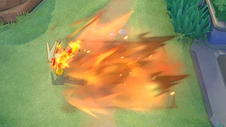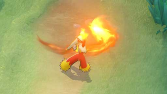 Récupération : 9 secEffet : Le lanceur libère une petite boule de feu dans la direction indiquée, ce qui inflige des dégâts aux Pokémon adverses touchés et réduit leur vitesse de déplacement.