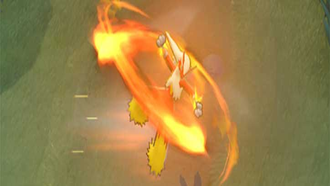 Récupération : 7.5 secEffet : Le lanceur se charge d'énergie sur place. Si cette capacité est utilisée à nouveau après que le lanceur a commencé à charger, il lance un coup de pied embrasé dans la direction indiquée, ce qui inflige des dégâts aux Pokémon adverses touchés. Plus l'énergie charge longtemps, plus cette capacité inflige de dégâts. Si le lanceur charge une certaine quantitié d'énergie ou plus, cette capacité repousse également les Pokémon adverses touchés.