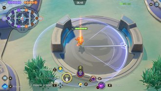 Récupération : 4.5 secEffet : Le lanceur crée un portail sur sa position et se téléporte jusqu'à la zone ciblée, ce qui inflige des dégâts et repousse les Pokémon adverses proches. 2 flammes sont ensuite tirées sur les Pokémon adverses à portée pour infliger des dégâts et ralentir de 40% pendant 2 secondes. Réutiliser la capacité (délai : 4.5 sec) permet au lanceur de se téléporter au portail, à la position d'origine. Un allié lié via Tour de Magie peut aussi se téléporter à cette position et dans ce cas, il restaure des PV.