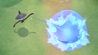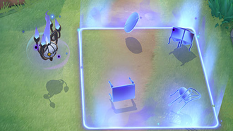 Récupération : 10 secEffet : Le lanceur crée une zone de pouvoir mystérieux contenant des mirages de meubles flottants (tels que des tables et des chaises) autour de lui. Si un Pokémon adverse entre en contact avec un mirage, il subit des dégâts et sa vitesse de déplacement est réduite. De plus, la vitesse de déplacement des Pokémon adverses qui touchent le périmètre de la zone est également réduite.