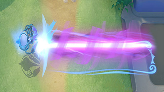 Dégâts spéciaux (réduits par la Déf. Spé. des cibles) Dégâts d'explosion : 630 + 24*(lvl-1) + 132% Atq. Spé.Amélioration (Niv. 11) : Quand une explosion en fin de torrent touche un Pokémon adverse, le lanceur inflige davantage de dégâts pendant une courte durée.