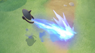Récupération : 108 secEffet : Le lanceur enveloppe la zone autour de lui dans les ténèbres et réduit la vision des Pokémon adverses pendant une courte durée. Si la capacité Unité est utilisée à nouveau, le lanceur envoie une rafale de feu en continu dans la direction indiquée, ce qui inflige des dégâts aux Pokémon adverses touchés. Une fois lancé, le rayon peut être contrôlé et son dernier jet inflige davantage de dégâts.