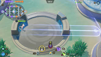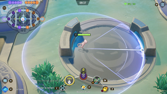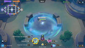 Récupération : 7 secEffet : Le lanceur se téléporte sur le Pokémon allié ciblé pour augmenter de 40% sa vitesse d'attaque pendant 2 secondes et octroyer un bouclier de 3 secondes. À l'utilisation, réduit de 1 seconde le délai de l'autre capacité. Les Pokémon adverses sont marqués après 7 secondes. Si un Pokémon marqué est touché, la marque est consommée et la capacité réinitialisée.Bouclier : 300 + 100% Atq. Spé.Amélioration (Niv. 12) : Réduit la durée d'attente de marquage à 6 secondes et réduit le délai de récupération de base à 6 secondes,