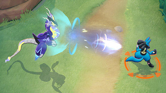 Effet : Crée un terrain électrique autour de Miraidon pendant 10 secondes en frappant un joueur ennemi. Si Miraidon a de l'énergie Aeos, jusqu’à 40 points d'énergies (par multiple de 10) seront consommées lors de la création du terrain électrique, augmentant ainsi sa taille. Miraidon et ses alliés ne peuvent pas être endormis sur le terrain électrique. Miraidon sur le terrain électrique inflige 30% de dégâts supplémentaires tandis que les alliés infligent 10% de dégâts supplémentaires. Le terrain électrique renforce également les soins et le blindage des équipes alliées de 30% et affaiblit les soins et le blindage des équipes ennemies de 30%. Cette capacité passe sur un temps de recharge de 30 secondes après son déclenchement. |