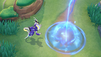 Récupération : 10 secEffet : Le lanceur génère un nuage dans le ciel depuis lequel de la foudre tombe sur le Pokémon adverse le plus proche à intervalles réguliers. La foudre inflige des dégâts et applique un effet ralentissant aux Pokémon adverses touchés par la zone d'impact.