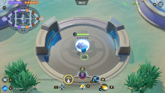 Récupération : 8 secEffet : Le lanceur fait tomber 5 Baies Oran devant lui et augmente de 70% sa vitesse de déplacement pendant 6 secondes (bonus décroissant au fil du temps : -15% par seconde). Pendant cette durée, les PV soignés par les Baies Oran sont convertis en bouclier de 3 secondes s'ils soignent le lanceur au-delà de ses PV max.Bouclier (par Baie Oran) : 50 + 6*(lvl-1)Amélioration (Niv. 11) : Augmente le nombre de Baies tombées à 6.
