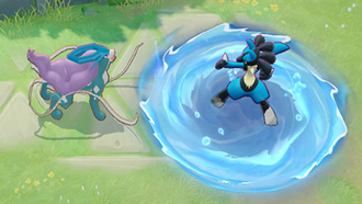 Récupération : 6 secEffet : Le lanceur émet un jet d'eau dans la direction indiquée, ce qui inflige des dégâts aux Pokémon adverses et les repousse. De plus, les Pokémon adverses touchés sont marqués en devenant trempés.
