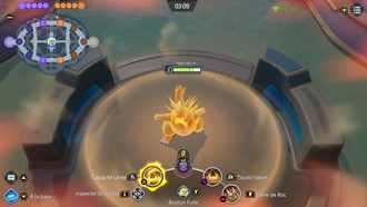 Récupération : 8 secEffet : Le lanceur fonce dans la direction désignée, ce qui inflige des dégâts aux Pokémon adverses sur le passage. S'il touche, son Attaque augmente de 15% pendant 3 secondes.