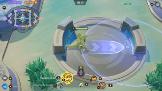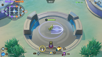 Récupération : 11 secEffet : Le lanceur charge pendant 4 sec max pour augmenter sa portée puis libérer une onde qui inflige des dégâts et étourdit pendant 0.75 sec. En chargeant, il gagne un bouclier de 5 secondes (cumulable 3 fois), augmente de 20% sa vitesse pendant 3 secondes (cumulable 3 fois) et devient résistant aux contrôles. S'il touche, il gagne un bonus pendant 8 secondes (+3 sec / Vibrobscur) permettant d'ignorer les défenses et boucliers et peut lancer une 2e attaque (délai : 8 sec) qui inflige des dégâts et ralentit de 30% pendant 2 secondes. S'il touche encore, il gagne un bouclier de 5 secondes par Pokémon touché (max 3).Boucliers (x6 max) : 300 + 75% Attaque