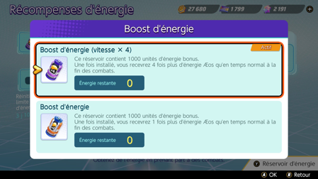 La quantité d'Énergie Æos que vous pouvez accumuler par semaine est fixée à 1400, mais vous pouvez l'augmenter en utilisant un Réservoir d'Énergie achetable en boutique pour 200 Gemmes Æos (+1000) et vous pouvez aussi augmenter la quantité d'Énergie Æos reçue par match en utilisant des Boosts d'Énergie, également achetables en boutique (x2 pour 50 Gemmes Æos : environ 30 parties à jouer ou x5 pour 200 Gemmes Æos : environ 8 parties à jouer).