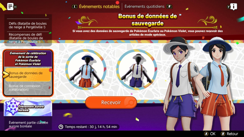 Bonus de connexion (célébration) pour Légendes Pokémon : Z-A (Du 17/11/25 au 01/02/26)