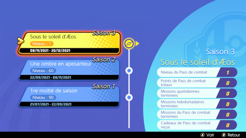 La saison 3 du Pass de Combat s'est déroulée du 8 novembre au 20 décembre 2021 (42 jours). Vous pouviez notamment obtenir un Holo-Costume Premium pour Florizarre, une fois le niveau maximum atteint ! Retrouvez tous les détails des missions et récompenses à obtenir durant cette saison ci-dessous.