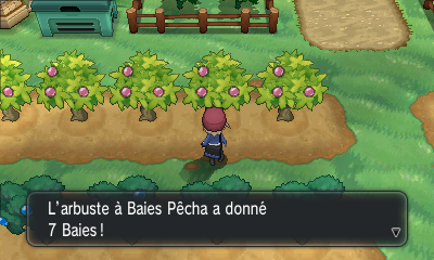 Dans Pokémon X et Y, un nouveau moyen d'obtenir des objets a fait son apparition : pendant un combat contre un Pokémon sauvage.Durant le combat, vous pouvez parfois apercevoir, en arrière-plan derrière le Pokémon adverse, un élément du décor. Dans le cas qui nous intéresse, un Arbre à Baies.
