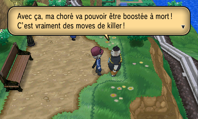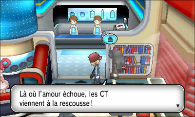 Dans le Centre Pokémon de Flusselles : une Mystimaniac vous donne une CT selon le moment de la journée.
