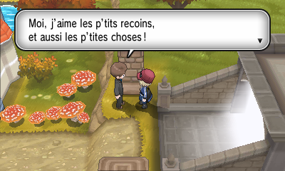 Dans une maison de Fort-Vanitas, un homme vous donne une Baie Ceriz, Maron, Pêcha, Fraive ou Willia au choix si vous lui montrez un Pokémon d'un certain type.De plus, la femme vous donne un Chococœur quotidiennement.
