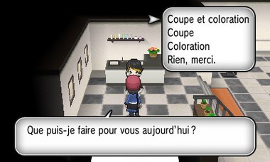 Au fur et à mesure de votre progression dans l'aventure, vous découvrez des boutiques et des salons de beauté dans certaines villes de Kalos dans lesquels vous pouvez modifier votre look.Chacune possède son propre style.