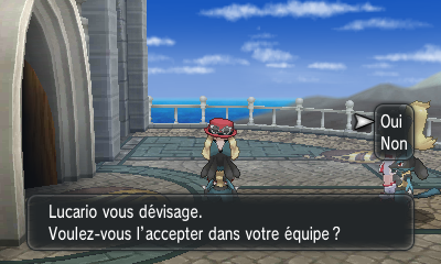 Une fois que vous avez vaincu Cornélia dans son arène à Yantreizh, elle vous attend à la Tour Maîtrise pour un combat de Lucario Méga-évolués. À l'issue, elle vous offre l'un des deux Lucario, tenant une Lucarite.