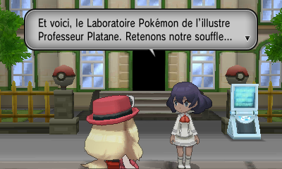 Au premier étage, la scientifique de gauche vous offrira 5 Luxe Balls. Grimpez au deuxième étage pour rencontrer le Professeur Platane. Si vous avez rencontré suffisamment de Pokémon, son assistante à l'entrée vous offrira la CT54 Faux-Chage. Celui-ci vous accueille dans son bureau et analyse tout de suite votre Pokédex. Sannah et Kalem/Serena surgissent alors et Platane vous défie en duel Pokémon.