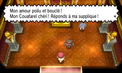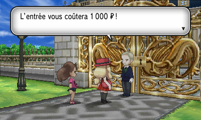 Une fois arrivé, Sannah vous rejoint devant la porte, et le gardien vous annonce que vous devez payer 1000 Pokédollars pour entrer. Comble du vice, votre personnage paye automatiquement. C'est donc allégé que vous pourrez pénétrer dans le palais.