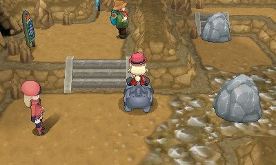 Continuez vers la gauche et descendez les petites falaises pour obtenir un PV Plus. Quelques dresseurs voudront vous défier :