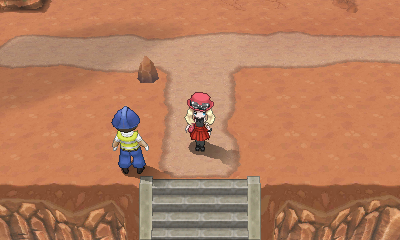 Descendez d'abord au sud de la steppe pour retrouver le chemin (qui passe à côté d'un panneau). Vous pouvez aussi explorer les cotés pour ramasser divers objets, dont la CT57 Rayon Chargé après deux rochers qu'il faut briser à l'aide d'Éclate-Roc. Partez ensuite vers l'ouest, la route tout au sud étant bloquée, pour tomber face à un sbire de la Team Flare.