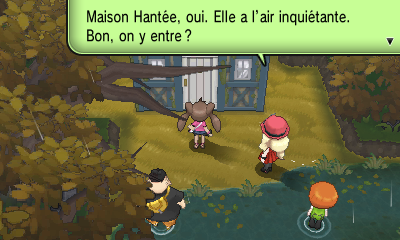 Le groupe (sauf Serena/Kalem) décide alors d'aller visiter la maison hantée un peu plus haut ; c'est l'heure de vous aventurer dans les marais. Frayez-vous un chemin à gauche après la première dresseuse.