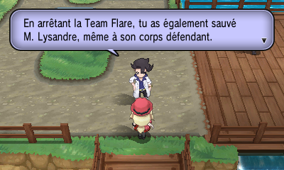 Passez par le Centre Pokémon vous soigner et descendez au niveau du pont pour rencontrer le Prof. Platane, qui vous présente ses excuses pour l'incident avec Lysandre, et vous félicite au nom du monde Pokémon pour votre exploit et vous défie.