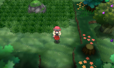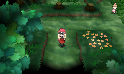 À partir de cette salle énigmatique, vous devez prendre la sortie de droite, pour tomber sur une clairière contenant une Herbe Mental cachée sous l'arbre : faites demi-tour pour tomber sur une autre salle très ressemblante à la première (vous remarquerez que l'entrée nord est inexistante), prenez alors le sud pour atteindre une nouvelle zone avec des escaliers menant à un plateau de hautes herbes ! Passez par le sud des escaliers et coupez l'arbuste pour entrer dans la prochaine zone : vous devez affronter une Mystimaniac avant de pouvoir récupérer la CT tant désirée.