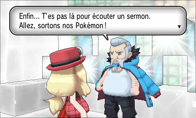À sa droite se trouve une Rapide Ball. Mais le plus important est l'arrivée de Serena/Kalem qui vous lance un ultime défi avant la Ligue Pokémon !