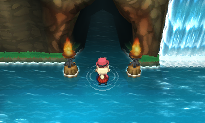 Pour continuer, rentrez simplement en surfant dans la grotte où la dernière série de dresseurs vous attendent :