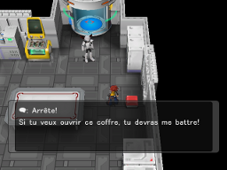 Après le combat, le Prof. Syrus se joint à vous ! Le coffre à côté contient une Pierreplante.