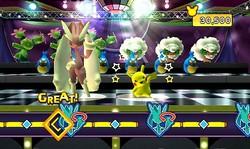 But du jeu : mettre KO les Pokémon-cibles qui défilent devant vous tout en évitant les bombes qui vous étourdissent si vous les faites exploser.