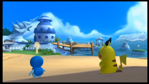 Vous disposez alors de la première phase de liberté, le temps de découvrir les lieux, mais souvenez-vous que Pikachu ne sait pas nager. Vous ne pourrez vous baigner qu'une fois Moustillon obtenu.
