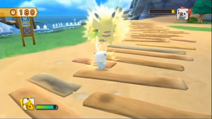 Ensuite, petit parcours du combattant : 3 marches à grimper en sautant, avant d'avoir le droit à une petite course contre votre guide. Les règles sont simples : vous disposez d'une minute (soit dit en passant quinze fois le temps nécessaire) pour rattraper Tiplouf et le charger avec Vive-Attaque.
